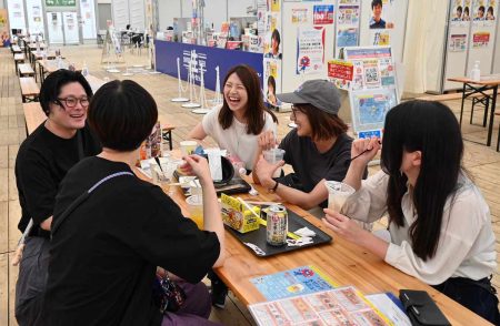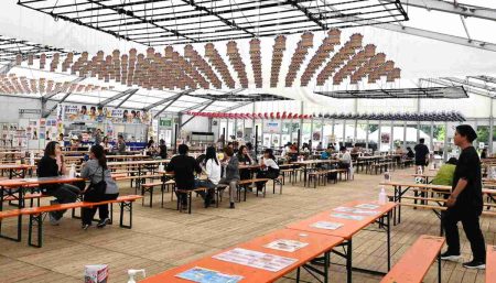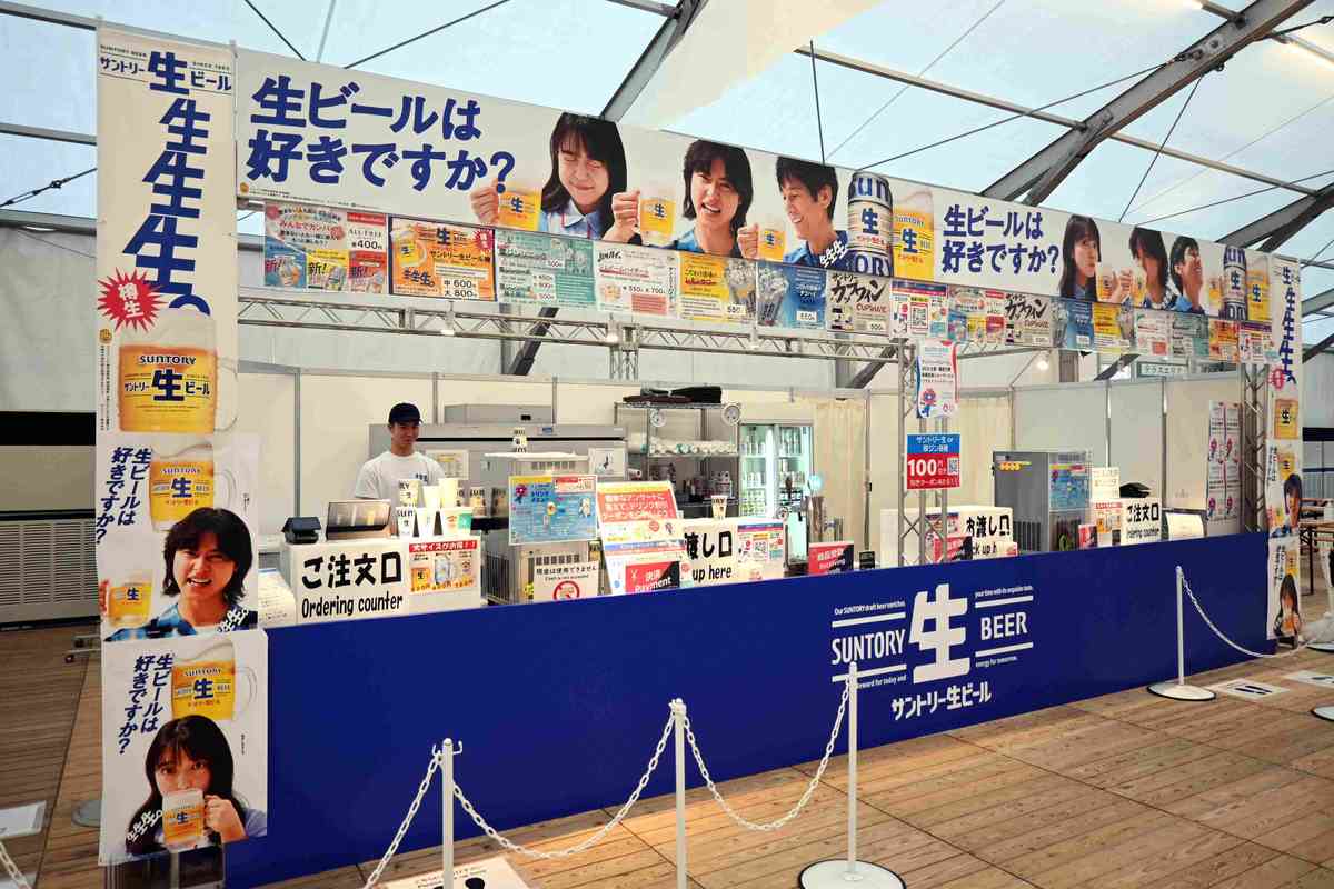 Hosted by the city of Osaka and supported by Suntory as an event alongside the 2025 Osaka-Kansai Expo, Osaka Gourmet Expo 2025 is taking place at Osaka Castle Park’s Taiyo-no-Hiroba through Oct. 13. Around 30 food and beverage booths are open from 11 a.m. to 10 p.m. Admission is free. In the evenings, there are live music performances and other shows on a stage inside the seating area.