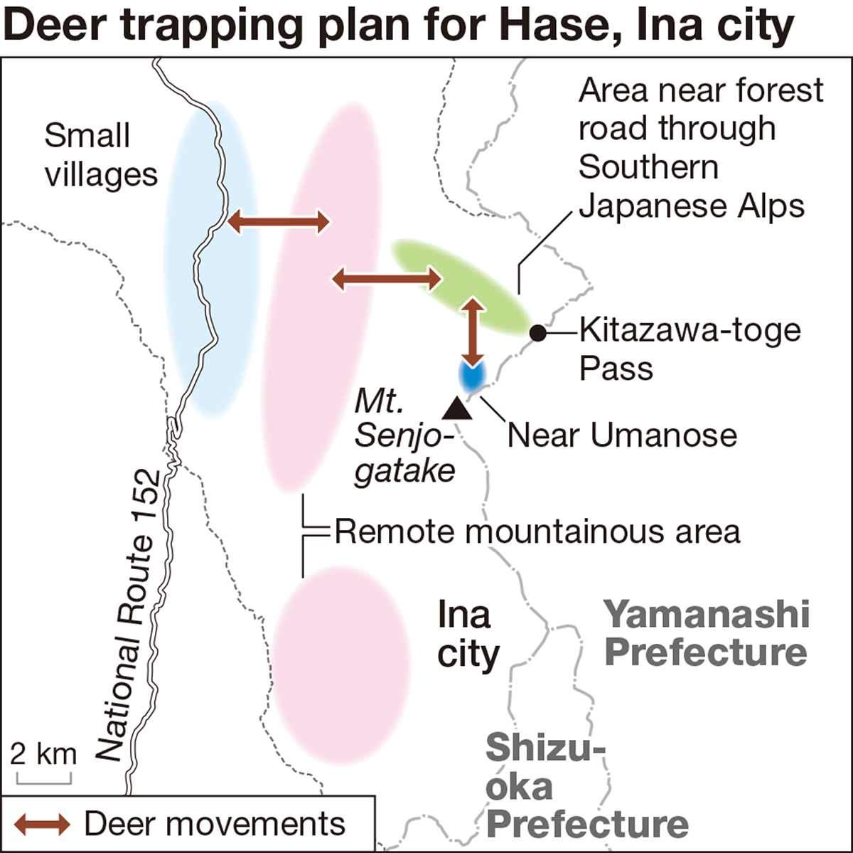 INA, Nagano — A wide-ranging initiative to reduce the number of Japanese sika deer around Mt. Senjogatake on the border of Nagano and Yamanashi prefectures has been launched in a bid to protect and regenerate vegetation in the area.
