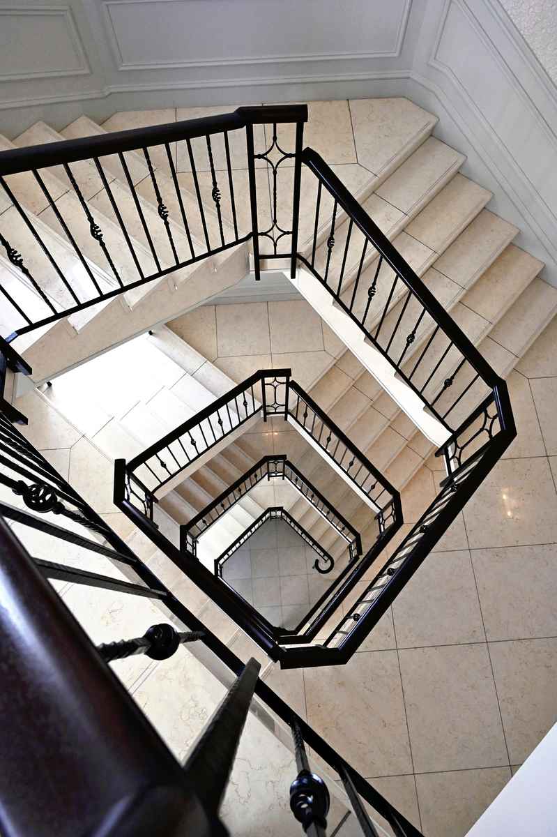 A round relief shaped like a wheel adorns the center of the dome’s ceiling. Flowers crafted from plaster are positioned around the wheel’s outer edge, resembling white lace.
