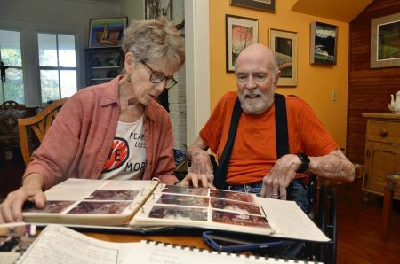 Holley Haymaker, left, and her husband Richard look at an album in Baton Rouge, La., on Nov. 6.