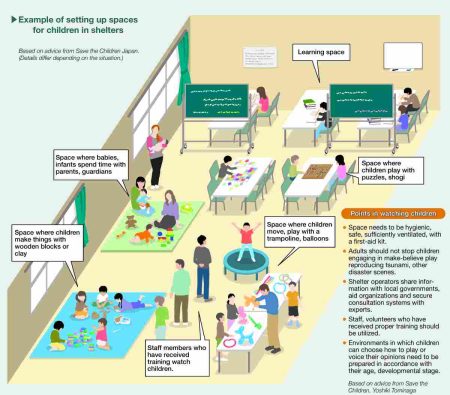 Special Consideration Needed for Children to in Evacuation Shelters, Including Designated Spaces for Learning, Playing