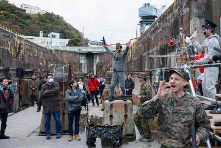 YOKOSUKA, Kanagawa — An open-air performance of the play “The Japanese Ideology Chapter 7” was recen...
