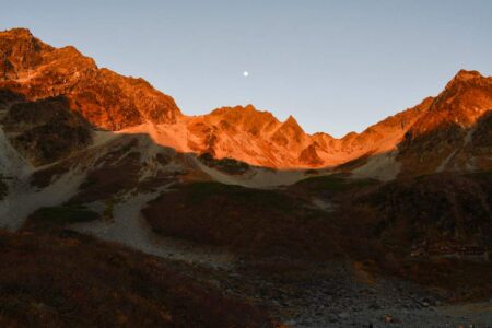 Fiery-Red Mountain Rocks at Dawn Delight Hikers