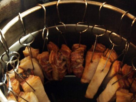 Chashu roast pork as it is being cooked on site.
