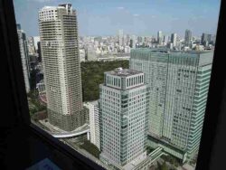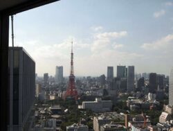I had a bit of free time so I paid the ¥620, got in the elevator and went up. From the observation deck on the 40th floor, I could see an up-close view of the Tokyo Tower. Amazing! As I walked around the floor, I could see Tokyo Bay stretched out before me, along with the Rainbow Bridge and the Ferris wheel out in Tokyo’s Odaiba district. As I kept walking, the green Hamarikyu Gardens popped out between the high-rise buildings with the entirety of Kyu Shibarikyu Gardens observable below. As I made a full circle back to where I started, I could see Shinkansen passing beneath me. All of this put some pep in my step.