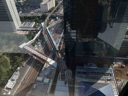 I was on my way to Chilitoma Ramen THANK, a shop in Shiba-Daimon in Minato Ward specializing in low-calorie, nutrient-rich spicy tomato ramen that athletes can eat in preparation for the Tokyo Olympics and Paralympics. But I came across a sign that read “Observatory” as I was passing through the World Trade Center Building connected to JR Hamamatsucho Station.