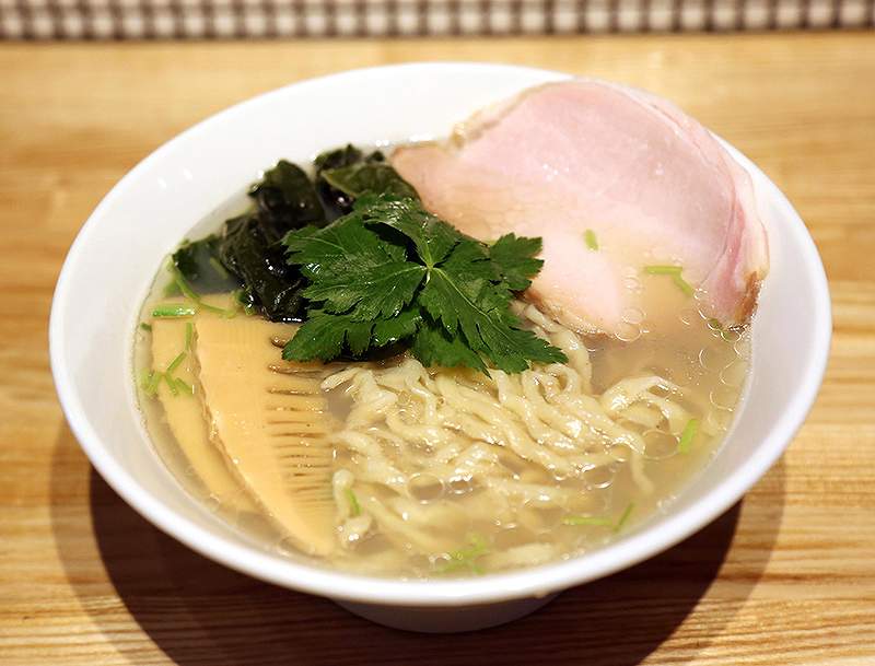 Clam ramen in a salted-base soup is served at Ramen Kai in Taito Ward, Tokyo.