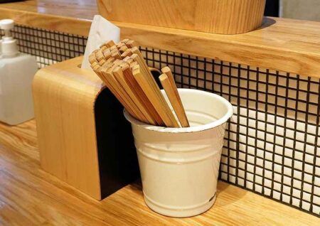 With enameled chopstick holders and wooden tissue cases, the restaurant felt more like a cafe than a ramen shop.