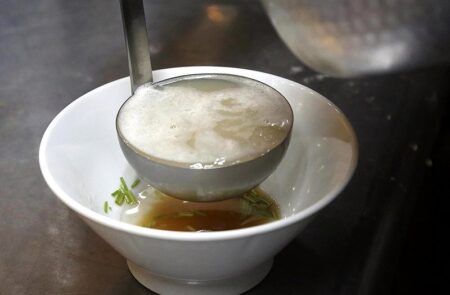 “The taste of the soup gently seeped” into him, he said. “I tried to recreate that experience in ramen. I would love for people of all ages, young and old, men and women, to eat it.”