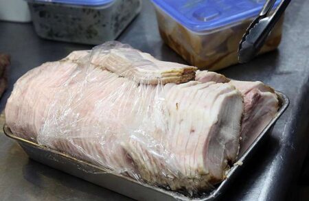 The taste of the clam ramen has been changing little by little since the shop’s opening. They didn’t use ingredients such as dried bonito flakes or dried mackerel flakes in the beginning, but when they created the limited menu item cold clam ramen, they used those flakes, which prompted them to then use those flakes in their hot clam ramen as well. They also started using the meat from pigs that were fed chestnuts for their ramen’s topping. The meat is soft and gives off little scent, according to Kibamoto.