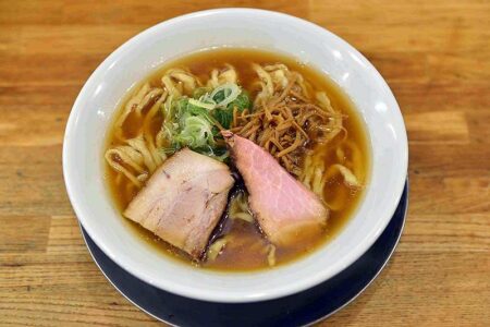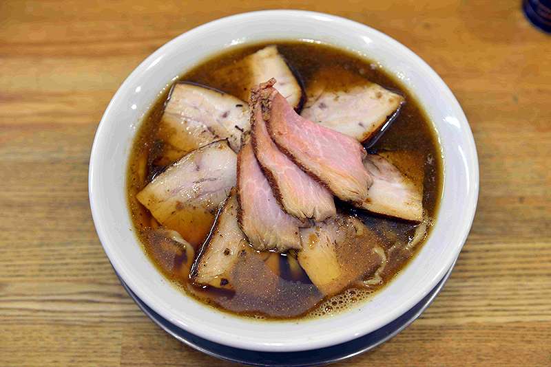 There are two kinds of chashu roast pork, both of which are homemade. One is made from pork belly, boiled for a long time to melt away the fat and make it soft and tender, and the other is made from pork thighs, cooked at a low temperature to keep it moist and juicy, just like roast ham. Both types of chashu can be enjoyed even in the basic Kitakata ramen.