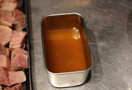 To bring out the richness, Hashimoto uses the whole duck for his soup, removing only enough meat for be used as a topping in the dish. It is possible to use only the bones, but he says having some meat makes the soup more delicious.