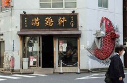 The Munch-ken building once housed its sister shop Mengyo, thus the painting of a fish on the wall.