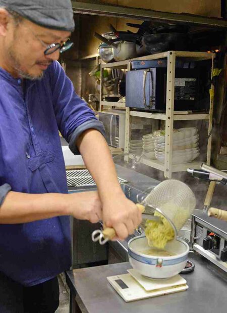 Umezawa began his rammen shop with no formal training, having learned to make ramen from a ramen shop owner who was a friend of his father. The flavor of his dishes are the direct result of his own research, which continues to this day. Even dishes he’s been making for years have a different flavor than they did in the past.