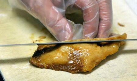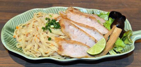 Habanero tsukemen noodles and slices of tontoro chashu pork are ready.