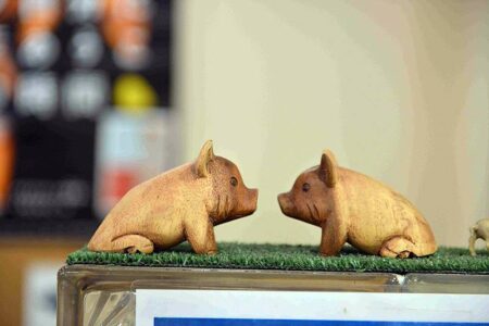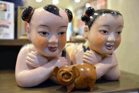 There are pig artifacts everywhere in the store.