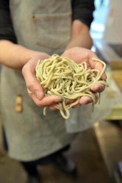 Homemade noodles made with a special blend of Japanese wheat.