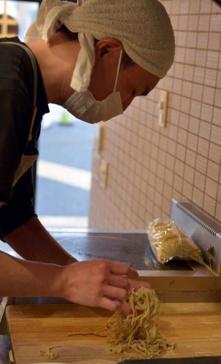 “We want people who get off the train tired after a long day’s work and people who live around this area to eat really good ramen and go home satisfied. We want those people to come back again with their families. We aspire to be that kind of ramen shop, pure and simple. We are very particular about the ingredients and seasonings we use, and very much confident that all the ramen on our menu is top-notch. But we try not to hit customers over the head with all that stuff. Above all, we just want people to be able to have fun and enjoy eating our ramen.”