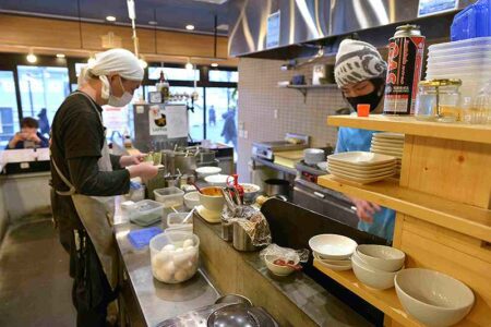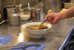 Ramens are cooked in an open kitchen