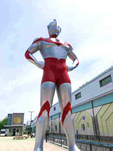 An Ultraman, said to be 40 meters tall, seems to be part of the scenery.