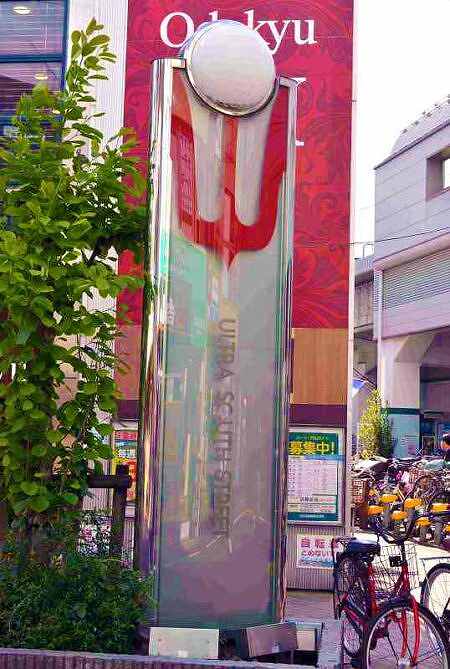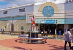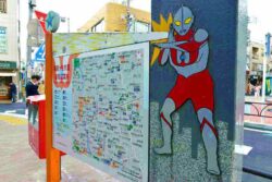 Ultraman also appears on the information board in front of the station.