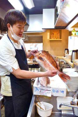 A splendid sea bream used for “sea bream with sesame sauce ramen.”