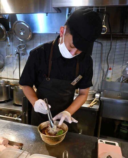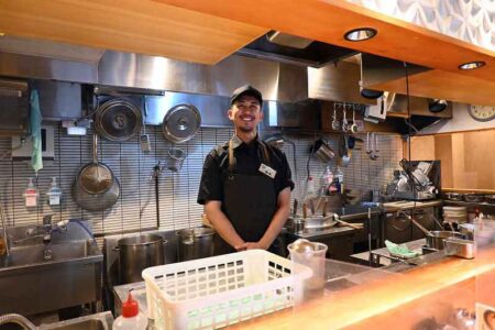 Fujiwara is in his 20s, but has worked in the ramen industry for nearly half his life. He worked at a local ramen restaurant in his hometown of Kawasaki when he was a 15 year old high school student. “I like to cook for people and make them happy,” says Fujiwara. “When you eat good food and receive good service, you feel satisfied, right? I want to cherish that.” Fujiwara has been working for Takahashi for three years now, and was promoted to manager a year ago. He hopes to open his own restaurant in the future.
