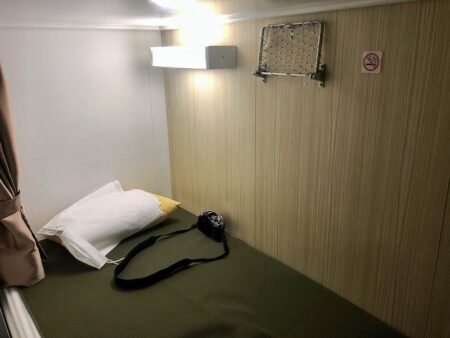 The bed in the special second-class cabin where I stayed. There is no window.