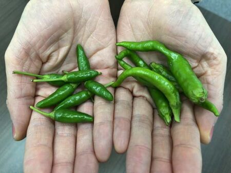 Hachijo Island’s green peppers, left, are smaller than most, but very hot!