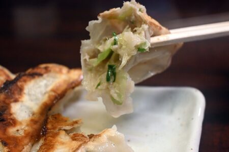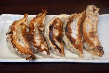 Ao-ton gyoza with green pepper paste. ¥500.