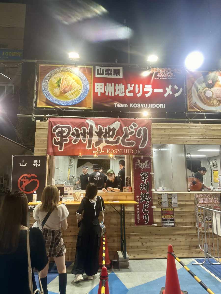 The Kosyu Jidori ramen booth at which the Yamanashi team including Furuya served their dishes at Okubo Park in Shinjuku, Tokyo, in October