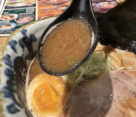 The shop’s most popular item, “Chashu miso with corn and butter” (¥1,330 — ¥1,480 from mid-July), came with a huge slice of pork belly chashu spread out across the bowl and hanging over the edge. Sugawara proudly said, “Our policy is ‘100% Hokkaido,” and the dish is true to that policy, featuring Akan pork, locally produced corn and butter, Hakodate makonbu seaweed and medium-thick curly noodles made from 100% Hokkaido wheat. The combination creates a luxurious bowl brimming with Hokkaido ingredients.