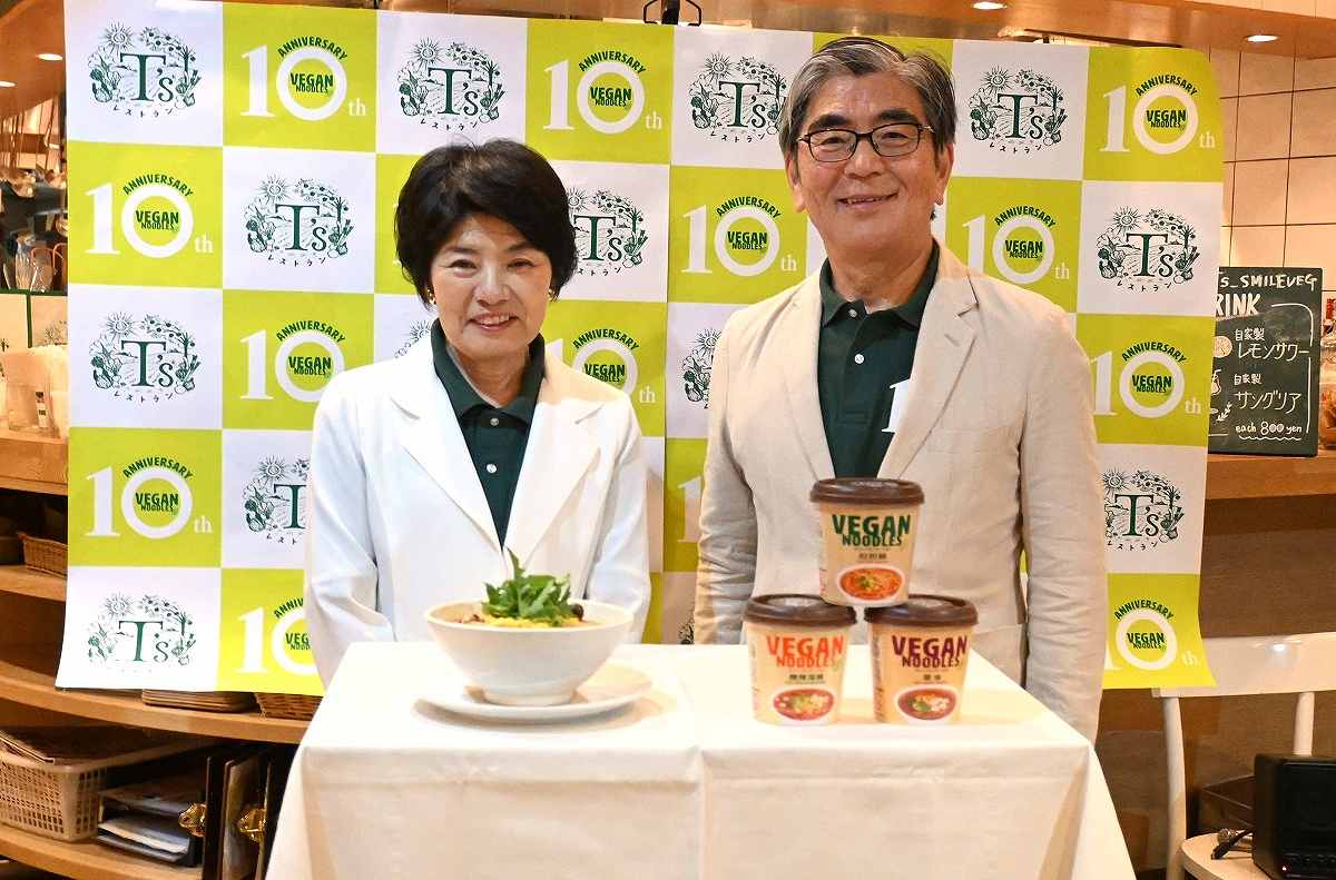 Masako Shimokawa, president of T’s Restaurant operator TOKYO-T’s, and Keiichi Okubo, president of Yamadai, held a joint press conference at the restaurant on Tuesday. According to Shimokawa, some inbound tourists will buy Vegan Noodles at the Tokyo Station shop before traveling elsewhere in Japan.