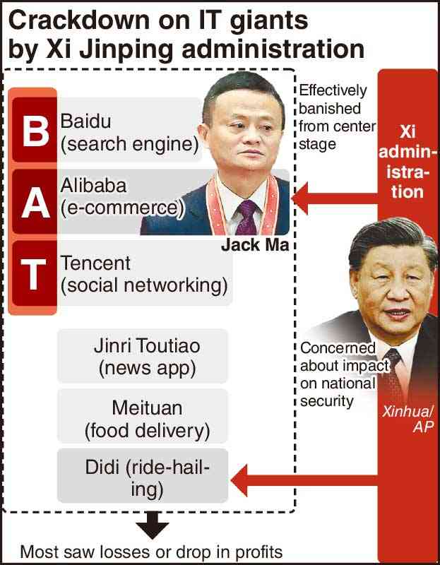 The Chinese government’s clampdown on the three IT giants Baidu, Inc., Alibaba Group Holding Ltd. and Tencent Holdings Ltd. — collectively known as “BAT” — has also intensified over the past two years.