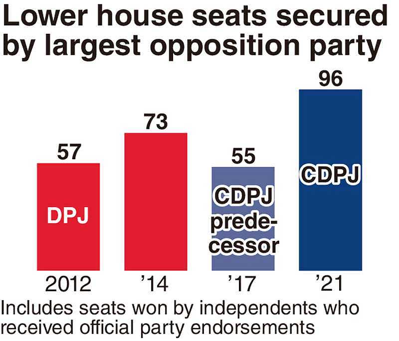 At the time of its launch, the CDPJ had more than 100 lower house members, but it secured only 96 seats in the lower house election last October.