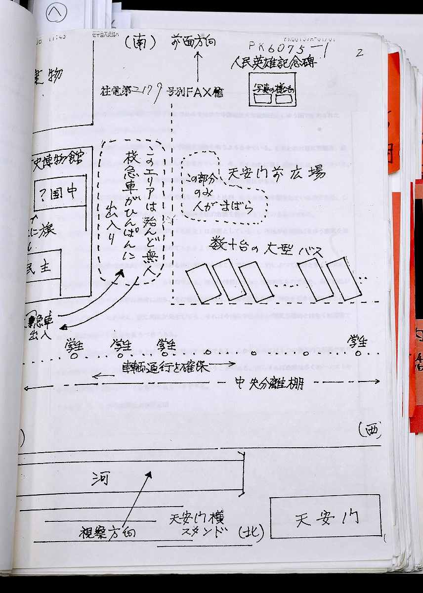 One of the documents, dated June 13, 1989, and sent by the embassy to the ministry, was titled “Evacuation activities for Japanese nationals conducted by the embassy.” According to the document, in early hours of June 4 — when the Tiananmen Square incident occurred — public transportation such as buses and subways had completely stopped. The embassy was flooded with pleas for help from Japanese people who were unable to get to the international airport. In related incidents, the residence for embassy workers was shot at, and a Japanese photographer was hit in the leg by a bullet and taken to hospital.