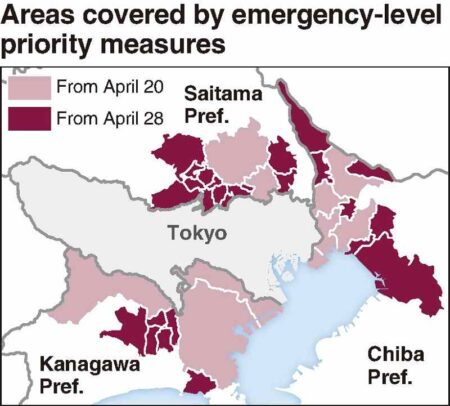 The three prefectures of Kanagawa, Chiba and Saitama have decided to expand the areas covered by eme...