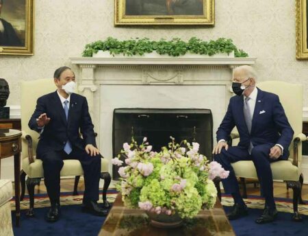 Prime Minister Yoshihide Suga and U.S. President Joe Biden have held their first summit and issued a...