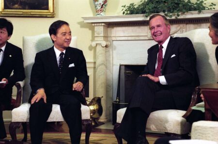 In preparation for the first summit between Prime Minister Toshiki Kaifu and U.S. President George H...