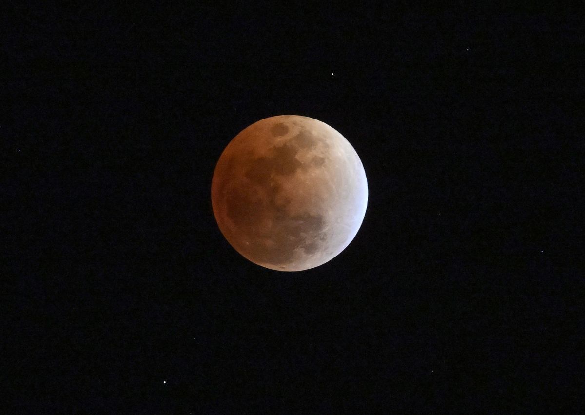 A total lunar eclipse occurred on Tuesday evening, with the full moon completely entering Earth’s shadow.