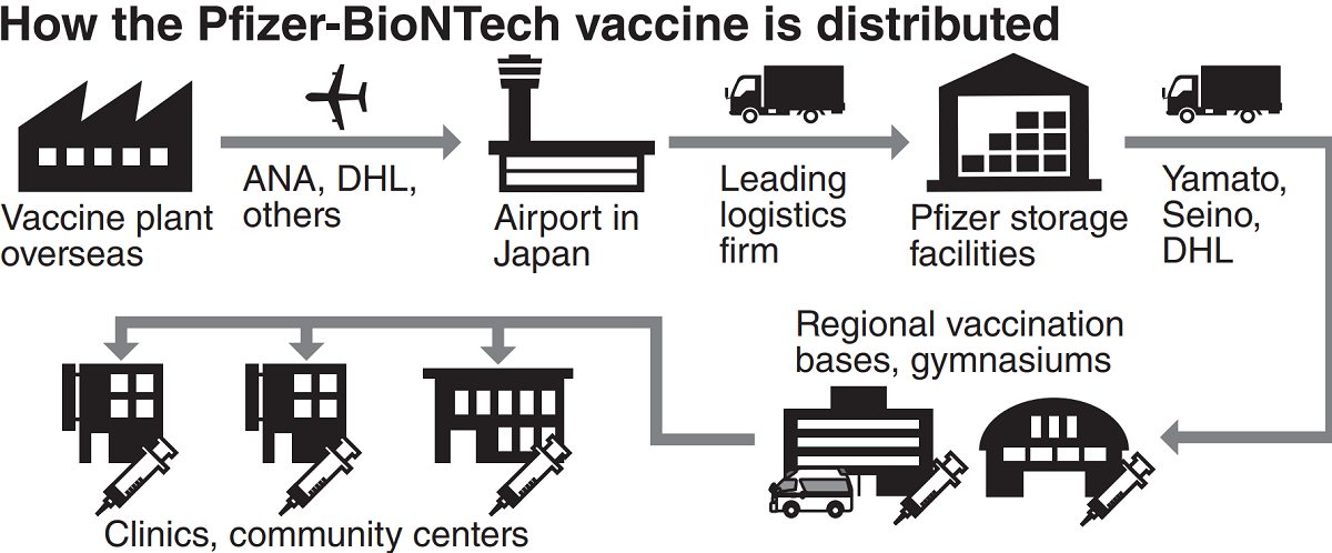 Some local governments are currently in discussions with Sagawa Express Co. and other logistics firms on distribution of the vaccines from the regional bases to local clinics and community centers where vaccinations will be provided.