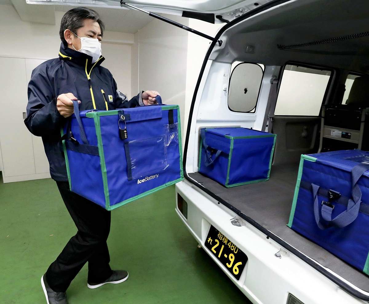 The vaccine is being transported from government-secured warehouses in Japan to about 10,000 regional vaccination bases, such as hospitals. It is stored in ultracold freezers at about minus 75 C and is being transported frozen or refrigerated when it is transferred from the bases to individual clinics.