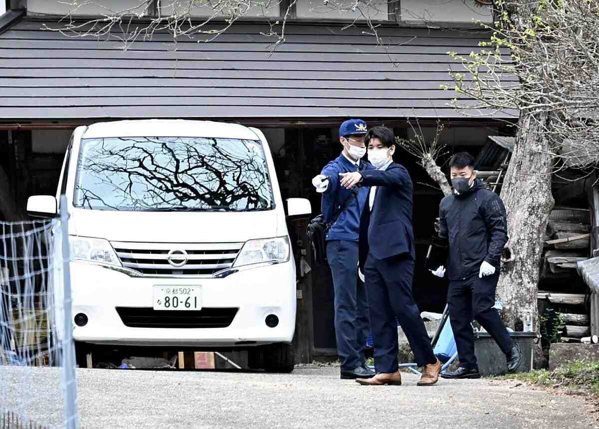 Investigators search Yuki Adachi’s home in Nantan, Kyoto Prefecture, on Wednesday.
