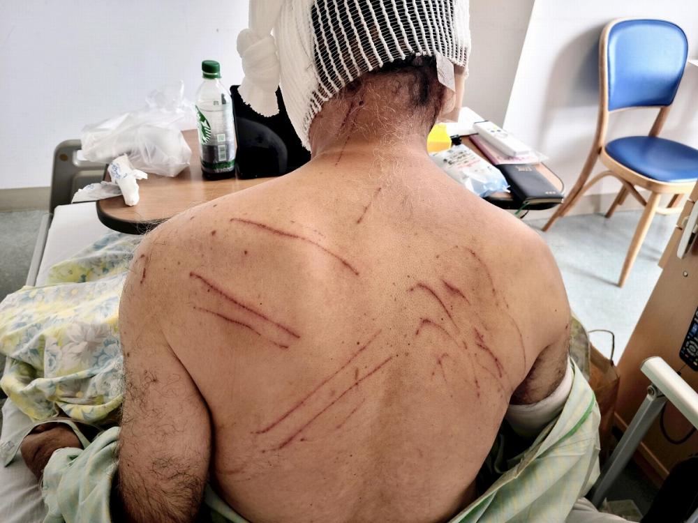 The bear — standing about 1.2 meters tall — grabbed him and dug its claws into the back of his head and his jaw. The bear tried to bite him on the neck, but he quickly blocked it with his left hand and kicked it in the stomach. “Damn!” he yelled, which startled the bear, and it ran away.