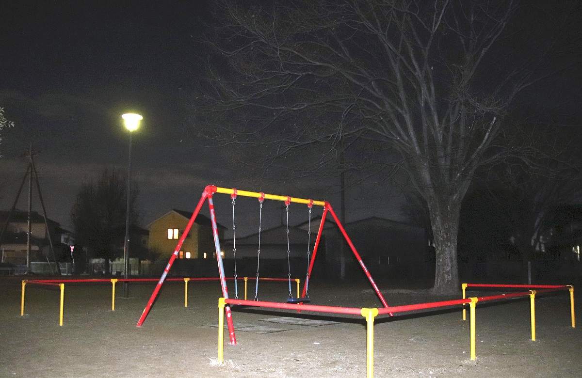 A park where people were bitten by a dog is seen on Wednesday night in Isesaki, Gunma Prefecture.