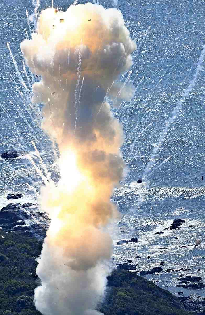 Right: The KAIROS rocket explodes in Kushimoto, Wakayama Prefecture at 11:02 a.m. on Wednesday.
