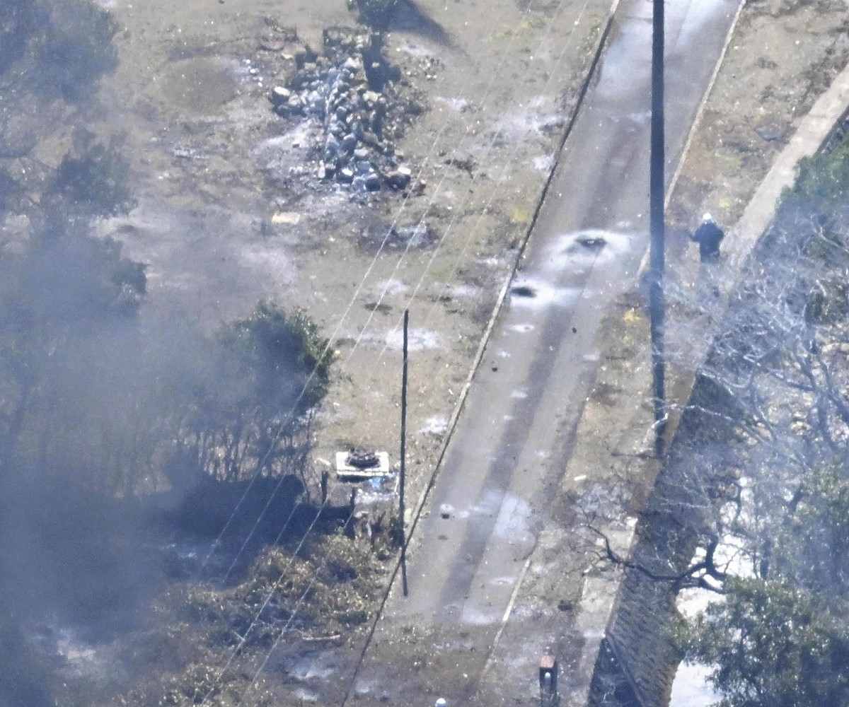 What is believed to be part of the destroyed Kairos rocket is seen in Kushimoto, Wakayama Prefecture, at 11:28 a.m. on Wednesday.