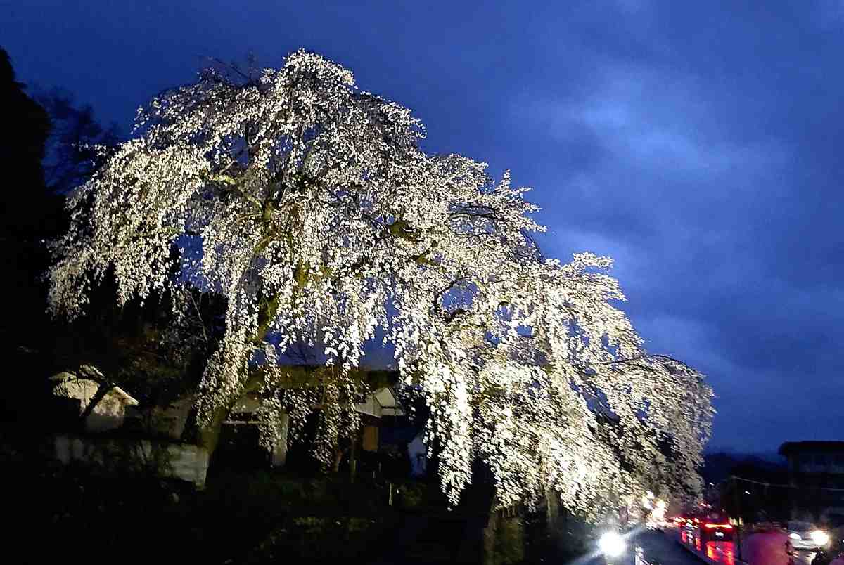 OITA – A Shidazakura weeping cherry tree near Ohara Hachimangu Shrine will be lit up at night through April 7 in Hita, Oita Prefecture.
