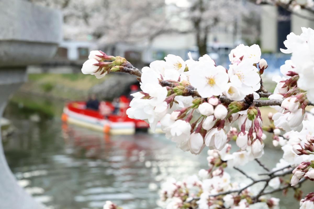 TOYAMA — Cherry blossoms have begun to bloom in Toyama City, the Toyama Regional Meteorological Observatory announced on Wednesday. Crowds were seen viewing the blossoms along Matsukawa River, which runs through the center of the city.