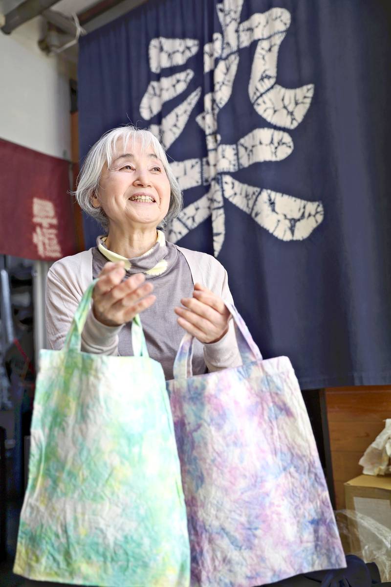 Miura’s husband had been the family’s breadwinner, but after he died, she approached Takaesu, who was attending a dyeing class as a hobby. Curious about her proposal, Takaesu immediately agreed to become Miura’s “protege.” About 12 years have passed since then.